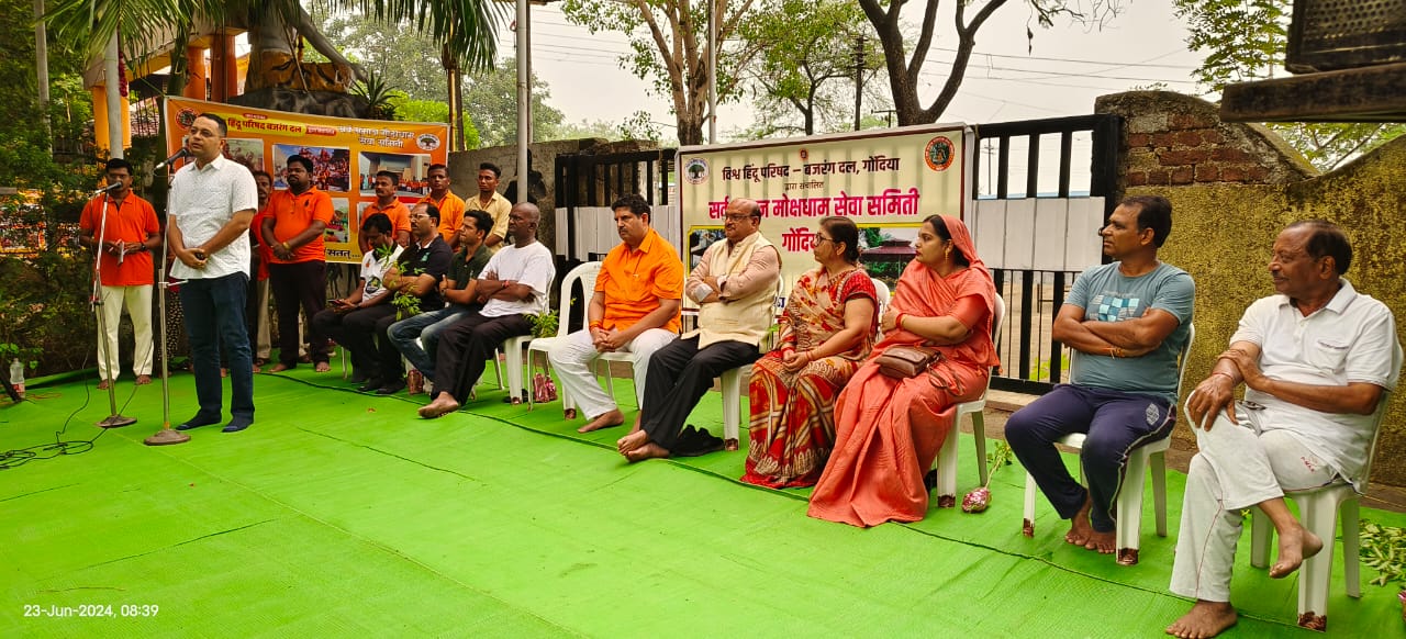 गोंदिया : स्थानीय सर्व समाज मोक्षधाम सेवा समिति के सेवा कार्य को 416 सप्ताह (8 वर्ष) पूरे होने पर प्रतिवर्षानूसार इस वर्ष भी वृक्षारोपण व सामूहिक श्रद्धांजलि कार्यक्रम रविवार, 23 जून को प्रात: 7 बजे आयोजित किया गया.कार्यक्रम की शुरुवात नियमित पद्धति से 3 बार ओमकार, 13 विजय महामंत्र, हनुमान चालीसा कर किया गया. प्रमुख अतिथि गोंदिया के विधायक आमदार विनोद अग्रवाल ने मोक्षधाम सफाई अभियान को 8 वर्षो से चलानें व आगे भी ऐसे ही सेवा निरंतर चले इसलिए पूरे सर्व समाज मोक्षधाम सेवा समिति का अभिनंदन किया एवं गोंदिया के डंपिंग यार्ड की समस्या को जल्द से जल्द समाप्त करने का आश्वासन दिया. कार्यक्रम के अध्यक्ष पोलीस अधीक्षक निखिल पिंगले ने अपने मनोगत की शुरुवात सर्व प्रथम मारुति स्तोत्र से कर उसका महत्व बताया. समाज की एकजुटता व कटिबद्ध रहने के लिए गोंदियावासियों की सराहना की. सर्व समाज मोक्षधाम सेवा समिति का मनोबल बढ़ाने के लिए मोक्षधाम सेवा कार्य की अभी ये शुरुवात है,d सभी मिलकर पुरे शहर को स्वच्छधाम बनाना है ऐसी इच्छा जाहिर की. कार्यक्रम में प्रमुख अतिथि के रूप में विहिप अध्यक्ष भिकम शर्मा, जिप सभापति पूजा सेठ, चिरागभाई पटेल, प्रेस ट्रस्ट ऑफ गोंदिया के उपाध्यक्ष जयंत शुक्ला, सायकल संडे ग्रुप के उपाध्यक्ष रवि सपाटे, हिरवळ बहुउद्देशिय संस्था के अध्यक्ष रुपेश निंबार्ते, वृक्षधारा संस्था के उपाध्यक्ष राकेश दमाहे, वंदना पाठक एवं गोंदिया के गणमान्य नागरिक और सर्व समाज मोक्षधाम सेवा समिति के सभी सदस्य के उपस्थित थे.