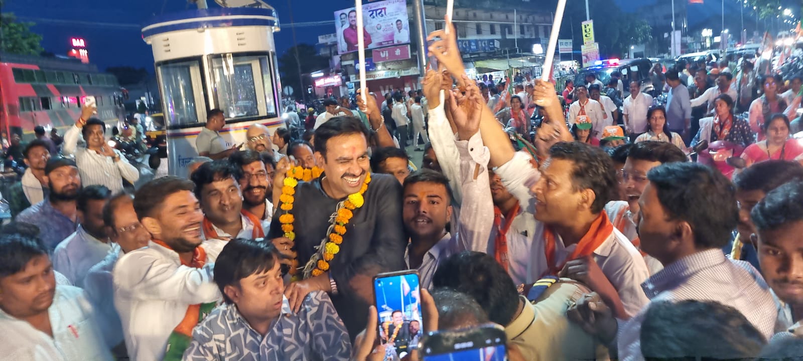 गोंदिया : महाराष्ट्र राज्य के संपन्न हुए विधान परिषद के चुनाव में जीत दर्ज कर प्रथम बार को गोंदिया आये डॉ. परिणय फुके का गोंदिया की जनता ने दिल खोलकर गर्मजोशी से स्वागत किया. उन्हें बधाई देने वालो का जनसैलाब उमड़ पड़ा. भाजपा कार्यकर्ताओं ने अपने लाडले नेता के प्रथम नगरागमन पर फुलचुर नाके में आतिशबाजी, ढोल-तासों और भगवा लहराकर विधायक फुके का वंदन-अभिनंदन किया. वही फुलचुर से कुड़वा तक विशाल विजय रैली निकालकर अपने नेता को चौराहे-चौराहे पर पुष्प की बौछार कर बधाई दी गई. शहर के प्रत्येक मार्ग पर, बाजार क्षेत्र में हर व्यक्ति ने विधायक फुके को पुष्प माला पहनाकर बधाई दी. जगह-जगह पटाखे फोड़े गए और पूरे शहर में भ्रमण कर कुड़वा स्थित विशाल लॉन में भव्य सत्कार समारोह आयोजित किया गया. कुड़वा स्थित विशाल लॉन में भाजपा के सभी पदाधिकारियों ने डॉ. परिणय फुके का जोरदार स्वागत किया. सड़क अर्जुनी, अर्जुनी मोरगाव, आमगांव, देवरी, गोरेगाँव, तिरोडा तहसील के कार्यकर्ताओं ने भी उपस्थिति दर्ज कराकर विधायक डॉ. फुके का स्वागत किया. इस विजय उत्सव कार्यक्रम में भाजपा जिलाध्यक्ष येसुलाल उपराडे, पूर्व मंत्री राजकुमार बडोले, जिप अध्यक्ष पंकज रहांगडाले, संगठन मंत्री वीरेन्द्र (बालाभाऊ) अंजनकर, पूर्व विधायक हेमंत पटले, संजय पुराम, भेरसिंग नागपुरे, नेतराम कटरे, सुनील केलनका, अशोक इंगले, विजय शिवनकर, रचनाताई गहाने, दिनेश दादरीवाल, सविताताई पुराम, संजय टेंभरे, संजीव कुलकर्णी, जयंत शुक्ला, तुमेश्वरी बघेले, धनलाल ठाकरे, अमित झा, माधुरी रहांगडाले, ओम कटरे, संतोष चौहान, डॉ. प्रशांत कटरे, नरेंद्र तुरकर, गजेन्द्र फुंडे, कुणाल बिसेन, भावनाताई कदम, नंदुभाऊ बिसेन, शंभुशरणसिंह ठाकुर, लायकराम भेंडारकर एवं सभी भाजपा जिला, शहर, तालुका आघाडी मोर्चे के पदाधिकारी, कार्यकर्ता बड़ी संख्या में उपस्थित रहे. विधायक फुके ने इस सत्कार समारोह में गोंदिया की जनता से और भाजपा पदाधिकारियों, कार्यकर्ताओ से मिलें प्रेम, सहयोग हेतु सभी का आभार व्यक्त किया.