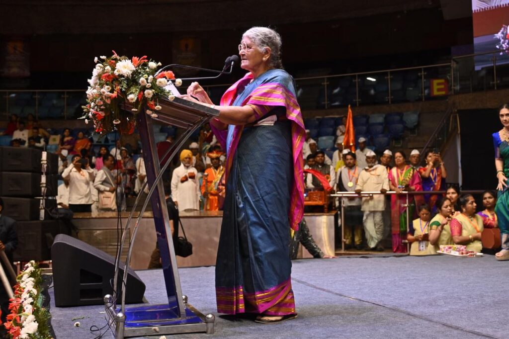 नवी दिल्लीच्या तालकटोरा स्टेडियम मध्ये उभारण्यात आलेला छत्रपती शिवाजी महाराज साहित्यनगरीत अखिल भारतीय मराठी साहित्य संमेलनाच्या उद्घाटनाच्या दुसऱ्या सत्रात त्या बोलत होत्या. कार्यक्रमाला माजी केंद्रीय गृहमंत्री सुशिलकुमार शिंदे, संमेलनाचे स्वागताध्यक्ष ज्येष्ठ नेते शरद पवार, मावळते अध्यक्ष डॉ.रवींद्र शोभणे, अखिल भारतीय मराठी साहित्य महामंडळाच्या अध्यक्षा प्रा.उषा तांबे, कार्यवाह डॉ. उज्ज्वला मेहेंदळे , कोषाध्यक्ष प्रकाश पागे, संमेलनाचे निमंत्रक संजय नहार आदी उपस्थित होते.