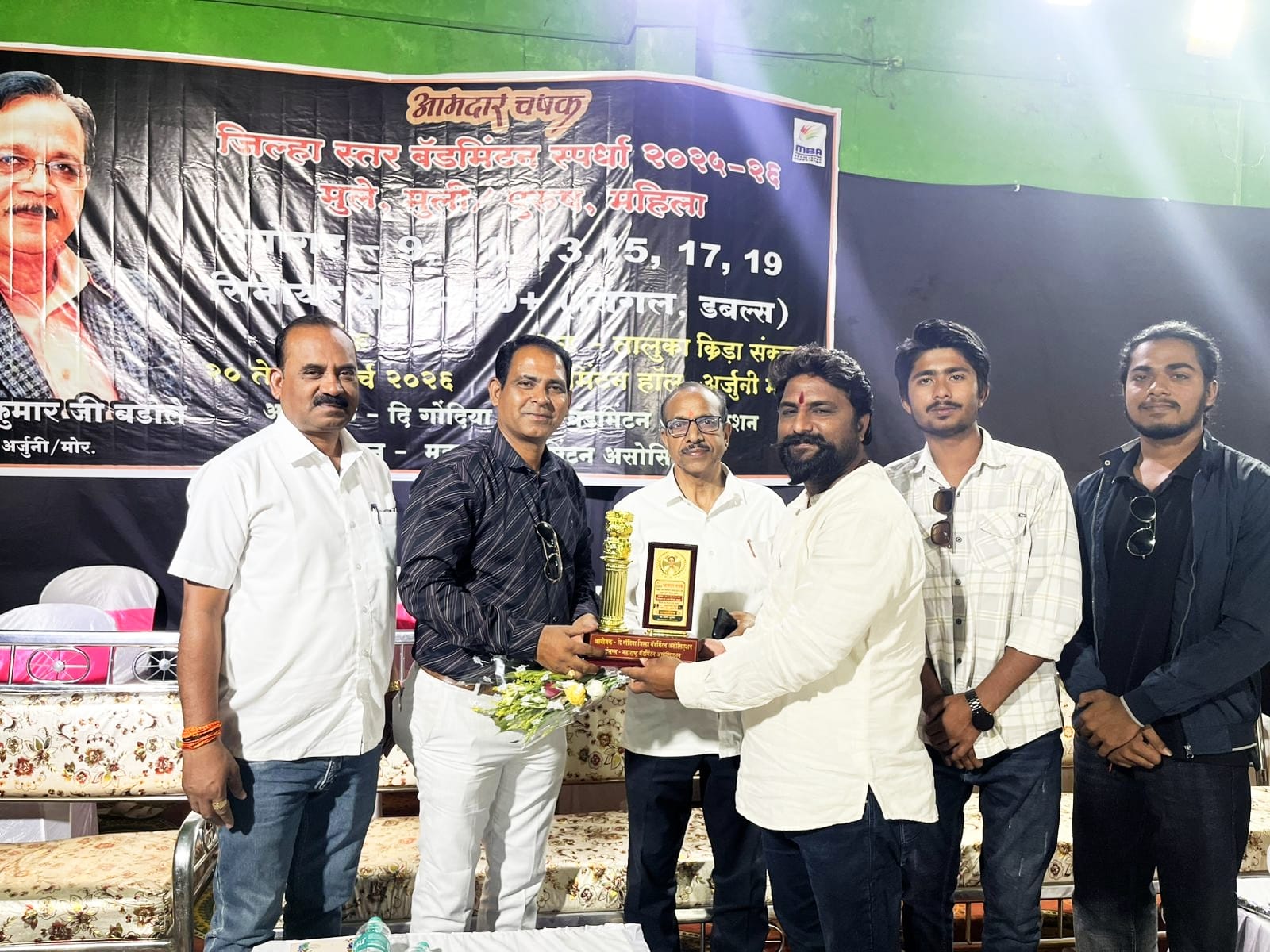 तालुका क्रीडा संकुल, अर्जुनी/मोर येथे आयोजित “आमदार चषक” जिल्हास्तरीय बॅडमिंटन स्पर्धा 2025-26 चा पारितोषिक वितरण सोहळा 22 मार्च 2026 रोजी उत्साहपूर्ण वातावरणात पार पडला. जिल्ह्यातील तब्बल 284 खेळाडूंनी विविध वयोगटांत सहभाग नोंदवत स्पर्धेला मोठा प्रतिसाद दिला.