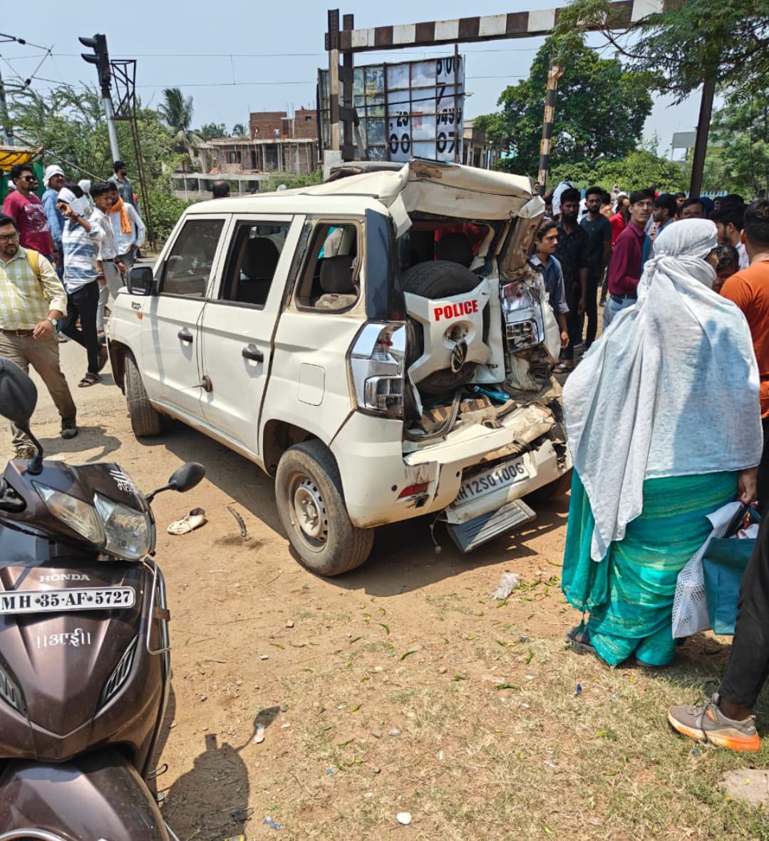 गोंदिया : शहरातील रिंग रोड स्थित सहयोग हॉस्पीटल अवंती चौक गोंदिया ते रेल्वे क्रॉसींग द्वारका लॉन दरम्यान एका आयसर वाहनाच्या चालकाने आपल्या ताब्यातील वाहन भरधाव वेगाने चालवून सहयोग हॉस्पिटल समोर बस व ट्रकला धड़क दिली. त्यांनतर द्वारका लॉन समोरील स्पीड ब्रेकरवर पोलीस वाहनास मागेहुन जोराने धकड दिली. या धड़केत पोलिस वाहन अक्षरशः हवेत उसळुन वाहनातील अधिकारी पो.नि. दिनेश लबडे, तर वाहन चालक मुरलीधर पांडेसह इतर 5 जण जखमी झाले तर एका मोटरसायकल स्वार इसमाचा मृत्यु झाला. ही घटना आज बुधवार, 22 मेच्या सकाळी 10.45 वाजता ते 11.15 वाजता दरम्यान घडली. पोलिस निरीक्षक लबडे आणि वाहन चालक पांडे यांना बजाज हॉस्पीटल येथे उपचारार्थ भरती करण्यात आले आहेत. सदर वाहन अपघातात 4 ते 5 वाहने एकमेकांना मागेहून जोराने धडकल्याने भीषन अपघात घडलेला आहे. 3 ते 4 नागरीक किरकोळ, गंभिर जखमी झाले असल्याने जखंमीवर सहयोग हॉस्पीटल येथे उपचार सुरू आहे. आयसर वाहनाचा चालक अपघात घडवून घटनास्थळावरून पसार झालेला असुन पोलिस पथक सदर वाहन चालकाचा शोध घेत आहेत. अपघाताची संपूर्ण परिस्थितीची, जखमिंची माहिती घेऊन सदर वाहन चालकाविरूध्द गुन्हा नोंदविण्याची प्रक्रिया सुरू आहे.